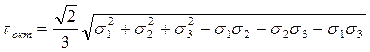 где Использование этой теории затруднено, так как не для всех материалов есть данные для определения коэффициента «k». Четвёртая теория прочности – теория октаэдрических касательных напряжений (энергетическая теория прочности), предложенная Губертом в1904 году. Условие прочности с указанным критерием