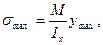 Подставив значение кривизны (6.9) в уравнение (6.8), получим Максимальные напряжения будут при у = уmax, т.е., Из этого условия прочности может быть решен вопрос о размерах поперечного сечения балки