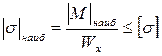 Первая опасная точка на поверхности балки, в ней линейное напряженное состояние, для которого условие прочности записывается для сечения, где М=|М|наиб