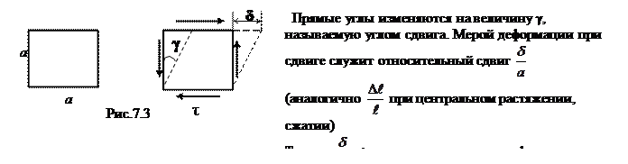маций tgγ = γ, тогда Как показывает опыт, угол сдвига γ прямо пропорционален касательным напряжениям. Эта зависимость между γ и τ называется законом Гука при сдвиге и записывается выражением