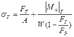Здесь ( Наибольшие напряжения при поперечном изгибе с растяжением вычисляются по формуле