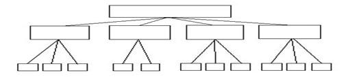 Особенности, достоинства и недостатки механистических организационных структур управленияВ зависимости от используемых подходов к проектированию организации различают механистический и органический тип структур управления. Механистическая или бюрократическая структура управления (рис. 14) - это исторически первый тип структур. Концепцию подхода к построению этого типа структур разработал немецкий социолог Макс Вебер, предложивший нормативную модель так называемой рациональной бюрократии. Отсюда и название структур. Применение термина “механистический” к структуре управления показывает, что структура создана наподобие машинного механизма. Основными характеристиками этой структуры являются: узкая специализация в работе, работа по разработанным правилам, четкие права и ответственность, ясность в уровнях иерархии, отношения формальные и носят официальный характер.