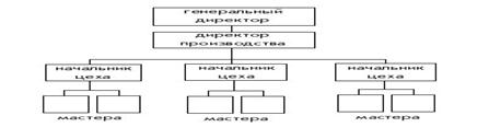 Линейная структура управления (рис. 15) является одной из простейших структур. Она характеризуется тем, что во главе каждого структурного подразделения находится руководитель, который наделен всеми полномочиями и который осуществляет единоличное руководство подчиненными ему работниками. Он сосредотачивает в своих руках все функции управления. При линейном управлении каждое звено и каждый подчиненный Рис. 15. Линейная структура управления