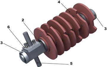 2. Кулачковый вал 3. Подшипники 4. Профилированные шайбы 5. Водило 6. Ограничитель хода штока