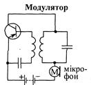 РАДІОПЕРЕДАВАЧ. Основою сучасного радіопередавача є генератор незатухаючих коливань. Якщо передавач випромінює незатухаючу синусоїдну хвилю, то в приймальній антені реєструються гармонічні коливання, які не несуть жодної інформації. Щоб передавати які-небудь сигнали, мовлення, музику, треба змінювати характер високочастотних коливань, наприклад, амплітуду. Цей процес називають модуляцією. Наприклад, при телеграфній модуляції випромінювання перериваються за допомогою ключа, тобто посилаються короткі