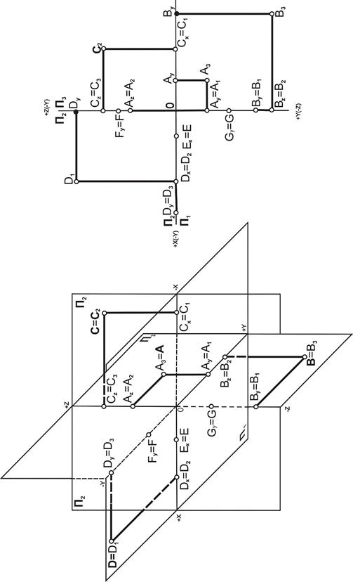 Положение точки в пространстве относительно плоскостей проекций определяется её координатами. Координатой Х определяется удалённость точки от плоскости П3 (проекция на П2 или П1), координатой
