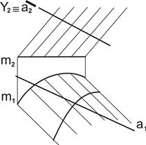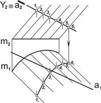 Пересечение поверхности прямой линией Для нахождения точек пересечения прямой с какой-либо поверхностью необходимо провести через данную прямую вспомогательную плоскость, после чего найти линию пересечения этой вспомогательной плоскости с данной поверхностью. Точки пересечения полученной линии с данной прямой и будут искомыми точками пересечения прямой с поверхностью. Обычно в качестве вспомогательной плоскости выбирают проецирующую плоскость, проходящую через данную прямую. Поскольку линия пересечения поверхности с проецирующей плоскостью строится проще, чем с плоскостью общего положения (табл. 7.5). Таблица 7.5