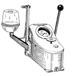Рис. 13.2. Прилад для діагностування форсунок Герметичність форсунки перевіряють при тиску 30 МПа. Показником герметичності є час спадання тиску (на 3 МПа має бути не менш як 30...45 с). Для визначення цього часу тиск впорскування форсунки, яку перевіряють, регулювальним гвинтом доводять до 30 МПа за манометром, включаючи секундомір; коли тиск спаде до 25 МПа, секундомір виключають. Тиск впорскування форсунок визначають на спеціальних приладах за показаннями манометра. На працюючому двигуні тиск впорскування перевіряють за допомогою максиметра. Форсунку, яку перевіряють, приєднують до штуцера максиметра, а останній через паливо провід високого тиску - до секції насоса. За принципом дії максиметр аналогічний форсунці, тому, добившись одночасності впорскування палива форсункою і максиметром, за положенням мікрометричного пристрою визначають, при якому тиску відбувається впорскування. Після тривалої роботи форсунки на двигуні допускається зниження тиску впорскування до 13,5 МПа. Тиск початку впорскування форсунки регулюють, змінюючи затягання пружини за допомогою регулювальної гайки. Якість розпилювання палива форсункою перевіряють на спеціальних стендах і вважають задовільною, якщо паливо впорскується в туманоподібному стані, рівномірно розподіляється по поперечному перерізу конуса струменя і по кожному отвору розпилювача. Початок і кінець впорскування мають бути чіткими і супроводитися характерним (глухим) тріском. Зовсім не допускається підтікання палива з розпилювачів форсунок. У разі закоксування отворів розпилювача форсунку треба розібрати і деталі промити в гасі. Розбираючи форсунку, слід мати на увазі, що корпус розпилювача і голка утворюють прецизійну пару, тому заміна тільки однієї деталі не допускається. Внутрішні порожнини промивають бензином. Отвори і канали в корпусі форсунки прочищають волосяними йоржиками, а зовнішні поверхні - м'якими металевими щітками. Риски, подряпини, сліди корозії усувають притиранням або ж деталі заміняють новими. Внутрішню поверхню корпуса розпилювача очищають м'яким латунним стержнем, обгорнутим цигарковим папером. Коли є риски, подряпини на напрямній частині голки, а також сліди перегрівання, розпилювачі заміняють. Усі деталі з несправною різьбою заміняють новими. Фільтри очистки палива періодично міняють, а корпуси їх обов'язково промивають дизельним паливом.
