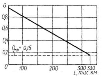 де G - критерій опору втомленості. Це дає змогу прогнозувати довговічність ресори до поломки за розмірами пошкоджень у листах від утомленості (рис. 19.1).
