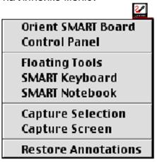 Перенесення і установка через Task Bar Захоплення, копіювання і вставка Для захоплення або копіювання і вставки в Notebook файл: 1. Виберіть текст чи графіку (але не обидва види разом) для імпорту з іншої програми або Notebook файлу. 2. Виберіть Cut або Copy з меню Edit або використовуйте меню правої клавіші миші. Або натисніть клавіші Cut або Copy з лінійки Standard. 3. Перейдіть на SMART Notebook software. 4. Виберіть Paste з меню Edit. Або натисніть клавішу Paste з лінійки Standard. Позиція з'являється у виділеному прямокутнику у верхньому лівому куті поточної сторінки. Ви можете перемістити її в будь-яке місце. Ви можете перетягнути текст або графіку як об'єкти з іншої програми через Windows Task Bar. Аналогічно ви можете перетягнути будь-який об'єкт з Notebook software в будь-яке активне Windows додаток. 1. Для копіювання об'єкта натисніть клавішу Ctrl перед тим, як перейти до кроку 2. Якщо ви хочете перемістити об'єкт, то відразу перейдіть до кроку 2. 2. Виберіть об'єкт. 3. Натисніть і утримуйте на вибраному об'єкті і перетягніть його в минимизированное Notebook додаток на Task Bar. Notebook software буде відкрито. 4. Продовжуйте переміщати об'єкт вгору у відкритий Notebook файл. Після досягнення місця вставки приберіть палець з поверхні дошки або відіжміть клавішу миші Функція Screen Capture дозволяє вам здійснити захоплення коментарів Pen Tray і фонового додатки в Notebook файл. За замовчуванням захоплене зображення з'являється на новій сторінку поточного Notebook файлу. Це можна змінити вибором Snapshot to New Page в меню Tools. Тепер захоплені зображення будуть з'являтися у верхній частині поточного Notebook файлу. Screen Capture крім цього дозволяє здійснити захоплення екрану або вибраної області в Notebook software. Якщо SMART Notebook softwareне відкрито, коли ви вибрали Capture Screen або Capture Selection з випадаючого меню інструментарію SMART Board, воно автоматично запускається для прийому захопленого зображення. Для захоплення обраної області або цілого екрану: 1. Клацніть по іконці SMART Board на лінійці меню.