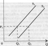 Рис. 5.3. Сдвиг кривой спроса Кроме того, следует отметить, что на величину спроса, кроме цены, влияют уровень доходов, размер рынка, цена и полезность других товаров, особенно товаров-заменителей (субститутов), субъективные вкусы и предпочтения, мода и т. п. Если, например, средний доход покупателей возрастает, то, при прочих равных условиях, кривая спроса D, сместится вправо и тому же уровню цены Р, будет соответствовать возросший уровень спроса Q2. Главный фактор, воздействующий на предложение, - издержки производства. Поэтому, если в результате использования достижений тех- Общая характеристика рыночной экономики РА