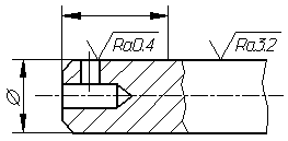 Высота h должна быть приблизительно равна применяемой на чертеже высоте цифр размерных чисел. Высота Н равна (1,5…5) h. Толщина линий знаков должна быть приблизительно равна половине толщины сплошной линии, применяемой на чертеже. В обозначении шероховатости поверхности, способ обработки которой конструктором не устанавливается, применяют знак (рис. 2.43). В обозначении шероховатости поверхности, которая должна быть образованна только удалением слоя материала, применяют знак (рисунок 2.44). В обозначении шероховатости поверхности, которая должна быть образованна без удаления слоя материала, применяют знак (рисунок 2.45) с указанием значения параметра шероховатости. Поверхности детали, изготовляемой из материала определенного профиля и размера, не подлежащие по данному чертежу дополнительной обработке, должны быть отмечены знаком (рисунок 2.45) без указания параметра шероховатости. Для определения шероховатости поверхности ГОСТ 2789-73 предусматривает шесть параметров. Высотные: Ra – среднее арифметическое отклонение профиля; Rz – высота неровностей профиля по десяти точкам; Rmax – наибольшая высота профиля; Шаговые: S –средний шаг местных выступов профиля; Sm – средний шах неровностей; tp – относительная опорная длина. Значение параметра шероховатости по ГОСТ 2789-73 указывают в обозначении шероховатости после соответствующего символа, например: Rа0.4, Rmax6.3; Rz50.