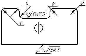 Если есть шероховатость поверхностей, образующих контур, должна быть одинаковой, обозначение шероховатости наносят один раз в соответствии с рисунком 2.61. Диаметр вспомогательного знака 4…5мм.