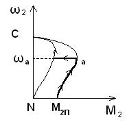 Когда скорость двигателя становится равной скорости ωа, ключ К размыкается и работа двигателя дальше происходит по механической характеристике CN.