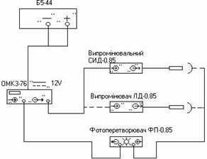 -на відкритий вхід ФП-0,85 подати світловий сигнал природного висвітлення (від ліхтаря) і вимірити ОТ потужність випромінювання.