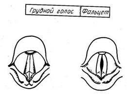 Как известно, голос ниже переходных нот звучит мощно. Это красивый, полный, певческий тембр, голос гибко поддается нюансировке и по субъективному ощущению певца "отзвучивает" у него в груди. От этого "грудного отзвучивания" и произошло название описываемого регистра — грудной регистр. Если приложить руку к груди при пении в грудном регистре, то ощущается дрожание грудной клетки. Таким образом, это название вполне соответствует действительно наблюдаемому явлению. Переходные ноты, субъективно неудобные, обычно могут быть взяты и в грудном и в фальцетном регистрах. Выше переходных нот начинается фальцетный регистр, который у необученного певца звучит весьма слабо, имеет специфический "продутый", "флажолетный" характер, беден по тембру и весьма ограничен по своим динамическим возможностям. Само слово "фальцет" означает "ложный голос". Русский синоним его — фистула. Поскольку при фальцетном голосообразовании "отзвучивает" голова, такой регистр называют также "головным". Каждый мужчина на нотах, близких переходным, может воспроизвести грудное и фальцетное звучание голоса, т. е. произвольно изменить механизм работы голосового аппарата. При этом в гортани ясно ощущается различная работа голосовых складок в разных регистрах. Как показали научные исследования, грудное и фальцетное звучание голоса зависит от характера работы голосовых складок. Еще М. Гарсиа, впервые посмотрев в гортань певца во время пения через изобретенное им гортанное зеркало, увидел эту разницу. В грудном регистре они смыкались полностью по всей длине, и в колебаниях участвовали также черпаловидные хрящи, а в фальцетном — черпаловидные хрящи плотно прижимались друг к другу и между краями голосовых складок образовывалась веретенообразная щель. Так еще более ста лет назад была выяснена причина грудного и фальцетного звучания голоса. Регистры существуют от природы, и, чтобы голос звучал ровно, надо принципиально по-иному его строить — делать «смешанным». Надо сказать, что в певческой практике часто под словом "микст" понимается недостаточно качественный певческий звук, не полноценный певческий голос, а подобие опертого фальцета. Существует выражение: "Он верхние ноты берет не голосом, а микстом". Под этим понимают неполноценное, облегченное звучание верхов, близкое фальцету. Действительно, микст имеет такой характер звучания, но может звучать и вполне насыщенно и оперто. Весь вопрос заключается в том, как смешан голос. Облегченное, звучание, с которым у многих людей связано представление о миксте, является лишь одним из видов, в котором преобладает фальцетный характер работы голосовых складок. Микст — это не облегченное формирование верхнего регистра, а принцип построения всего диапазона. При верном микстовом построении голос не имеет переходных звуков (нечего менять, так как всегда присутствуют оба механизма работы голосовых складок) и естественно развивается в смысле диапазона. Для большинства певцов, имеющих резкий переход от грудного звучания к фальцетному, достижение ровного и полного диапазона представляет большую, если не сказать наибольшую, трудность в технической обработке голоса. Случаи естественно образующегося микстового звучания в практике встречаются редко. На переходные ноты певцам следует обратить особое внимание, т.к. они наименее у