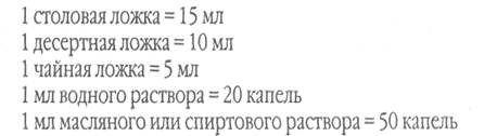 При дозировании жидкого лекарственного средства врач должен знать, что: Рецепты на лекарственные препараты, вызывающие наркоманию, и приравненные к ним лекарственные препараты (включенные в специальный список) выписывают на специальных бланках установленного образца с приложением штампа, круглой печати лечебного учреждения, личной печати врача и подписей врача и заведующего отделением данного лечебного учреждения. Остальные лекарства списка А выписываются на обычных рецептурных бланках и без рецепта в аптеках не отпускаются. Лекарственные средства группы Б также отпускаются в аптеках только по рецептам. Рецепт на лекарство, содержащее сильнодействующее или ядовитое вещество, действителен в течение 30 дней со дня его выдачи. В тех случаях, когда возникает необходимость ускоренного изготовления и отпуска лекарства, в левом верхнем углу рецептурного бланка пишут «Cito» (быстро) или «Statum» (немедленно). Слова подчеркивают или ставят восклицательный знак. При необходимости повторения лекарственной прописи на рецепте указывается также в левом верхнем углу «Repetatur» (пусть будет повторено), «Bis repetatur» (пусть будет повторено дважды) или «Semper repetatur» (пусть повторяется всегда). Когда врач выписывает лекарство для себя, на рецепте пишут «Pro auctore» (для автора). Различают сокращенные и развернутые лекарственные прописи. В развернутой лекарственной прописи перечисляют все входящие в лекарственный препарат ингредиенты и их количества. В сокращенной лекарственной прописи указывают сначала лекарственную форму, затем название лекарственного средства, концентрацию (если нужно) и количество, то есть не указываются вспомогательные, корригирующие и формообразующие индифферентные вещества. Лекарственные препараты, выпускаемые химико-фармацевтической промышленностью по фармакопейным прописям, называют официналъными (от officina -- аптека). Эти препараты выписываются в сокращенной форме. Лекарственные препараты, изготовляемые в аптеке строго по рецепту, составленному по усмотрению врача, с перечислением всех ингредиентов лекарственной формы, называют магистральными (от magister — учитель). Эти препараты выписываются в развернутой форме. В практической деятельности рекомендуется пользоваться готовыми лекарственными формами (официнальными препаратами и сокращенными лекарственными прописями). В педиатрической практике магистральными препаратами пользуются чаще, так как Фармакопея в большинстве случаев составлена с расчетом на взрослое население. Лекарственные формы могут быть дозированными и недозированными. Дозированными лекарственными формами называют те формы, для которых в рецепте приводится доза лекарственного средства на один прием и затем следует -Da tales doses numero... (D. t. d. N....) — «Дай таких доз числом...». Недозированными лекарственными формами называют те формы, для которых в рецепте лекарственное средство выписывается общим количеством на все приемы. Пациент должен сам делить его на соответствующее число приемов, о чем указывается в сигнатуре (по I столовой ложке, по 10 капель и т. д.).