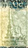 Водяные знаки расположены на купонных полях банкнот: на узком – цифровое обозначение номинала, на широком – изображение Петропавловского собора. При рассматривании на просвет на водяных знаках видны участки как более темные, так и более светлые по сравнению с общим фоном бумаги. На водяном знаке, расположенном на широком купонном поле, отчетливо заметны плавные переходы тонов от темных к светлым.