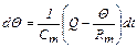 где ск – удельная теплоемкость вещества корпуса; Gв – вес корпуса; сщ – удельная теплоемкость вещества подшипниковых щитов; Gщ – вес подшипникового щита; γк – удельный вес вещества корпуса; γщ – удельный вес вещества подшипникового щита; lк – длина корпуса машины; Dн1 – наружный диаметр пакета статора; kо – коэффициент увеличения периметра корпуса за счет оребрения; bк – толщина корпуса; bщ – толщина подшипникового щита. При неизменных потерях Q, выделяемых в теле, дифференциальное уравнение нагрева однородного тела имеет вид