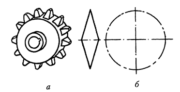 Рисунок 2.4 - Зубчасте колесо а-загальний вигляд; б-умовне позначення Рисунок 2.5 - Черв’ячне колесо