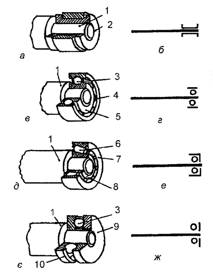 а-циліндричне; в-конічне; а,в-загальний вигляд; б,г-умовне позначення