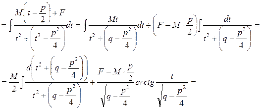 Интегрирование дроби IV типа проводится аналогично интегрированию дроби III типа.