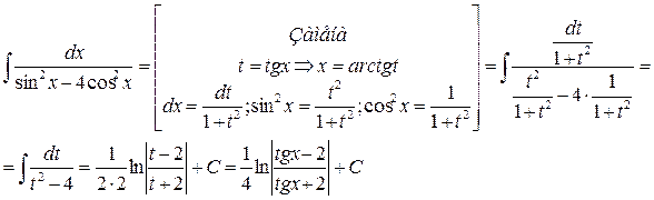 Такие интегралы находят сведением к интегралу от рациональной дроби с помощью замены: