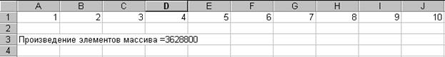 Cells(4, 1) = "Произведение элементов массива =" & Р