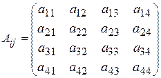 Ввод, а так же вывод двумерного массива, производится с использованием двойного цикла. В зависимости от условий задачи ввод и вывод можно организовывать по строкам или по столбцам. При вводе и выводе по строкам параметром внешнего цикла является индекс обозначающий номер строки, параметром внутреннего цикла – индекс (номер) столбца. При вводе по столбцам – внешний цикл по столбцам, внутренний – по строкам. Итак, ввод и выгод элементов двумерного массива осуществляется с помощью двух вложенных циклов For. Таким же образом (с помощью вложенного цикла) можно проводить обработку массива – находить максимальный (минимальный) элемент, вычислять сумму элементов и т.д. (см. раздел «Массивы»). Все это можно делать отдельно для каждой строки (столбца) или для всех элементов данного массива. Двумерные массивы, у которых значения индексов одинаковые, т.е. число строк равно числу столбцов, называют квадратной матрицей. При работе с квадратными матрицами используются специальные математические понятия, значение которых рассмотрим на примере матрицы размерами 4х4 – А (4,4):