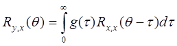 в котором Ry,x(q) – взаимная корреляционная функция между величиной выходного сигнала у(t) в любой момент времени t и величиной входного сигнала x (t) в момент времени t = q; Rx,x – автокорреляционная функция входного сигнала; g (t) – импульсная реакция системы. Если входная функция x(t) является белым шумом, тогда ее автокорреляционная функция является дельта-функцией Rx,x(q) = d(q). Взаимная корреляционная функция в этом случае принимает вид: