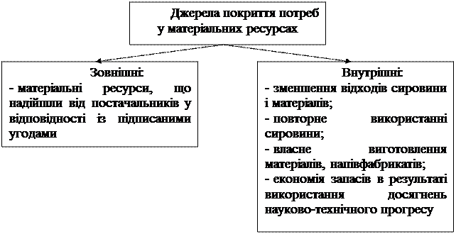 Рис. 4.2. Джерела покриття потреб підприємства в матеріальних ресурсах