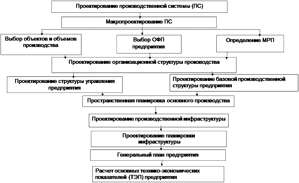 Рис. 4.1.1. Алгоритм организационного проектирования производственной системы