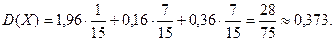 Найдем М (Х) = 49·0,1 + 50·0,8 + 51·0,1 = 50, М (Y) = 0·0,5 + 100·0,5 = 50. Как видно, мате-матические ожидания обеих величин равны, но если для Х М (Х) хорошо описывает пове-дение случайной величины, являясь ее наиболее вероятным возможным значением (при-чем остальные значения ненамного отличаются от 50), то значения Y существенно отсто-ят от М (Y). Следовательно, наряду с математическим ожиданием желательно знать, на-сколько значения случайной величины отклоняются от него. Для характеристики этого показателя служит дисперсия. Определение. Дисперсией (рассеянием) случайной величины называется математи-ческое ожидание квадрата ее отклонения от ее математического ожидания: D (X) = M (X – M (X))². Пример. Найдем дисперсию случайной величины Х (числа стандартных деталей среди отобранных) в примере 1 данной лекции. Вычислим значения квадрата отклонения каждого возможно-го значения от математического ожидания: (1 – 2,4)2 = 1,96; (2 – 2,4)2 = 0,16; (3 – 2,4)2 = 0,36. Следовательно,