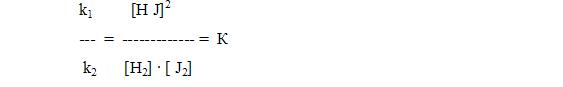 Обратимые и необратимые химические реакции Химические реакции, при которых исходные вещества целиком превращаются в продукты реакции, называются необратимыми: 2КСlО3 = 2КСl + 3О2 . Значительно чаще проходят обратимые реакции, идущие одновременно в двух противоположных направлениях – прямом и обратном: Состояние реагирующей системы, при котором скорость прямой реакции равна скорости обратной реакции, называют химическим равновесием, а концентрации реагирующих веществ – равновесными. Например, в системе Н2 + J2 ↔ 2HJ Ư прямой реакции = k1· [Н2]·[ J2], а Ư обратной реакции = k2 [Н J]2 Т.к. при химическом равновесии Ư прямой реакции = Ư обратной реакции, то для данной реакции k1· [Н2] · [ J2] = k2 · [Н J]2, откуда
