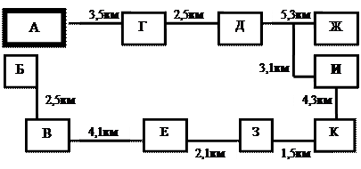 Рис. 11.8. Схема размещения пунктов и расстояния между ними
