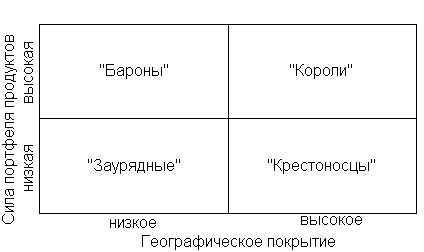 Рис. 43. Матрица видов интернационализации бизнеса Анализ положений различных отраслей в такой матрице (рис. 44) показывает наличие определенных отраслевых факторов интернационализации бизнеса.