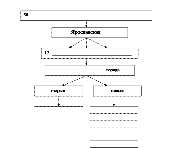 «Всемилостивейшее повелеваем: Ярославскому генерал-губернатору _____________, по изданному в прошлом году ноября 7 дня вновь учреждениям для управления губерний нашей империи, исполнить в декабре месяце сего года равномерно и в Ярославской губернии, составя сие новое наместничество из 12 уездов, а именно: Ярославского, ______________, Углицкаго, ________________, Петровскаго, _______________, Мышкинскаго, ______________, Пошехонскаго, _____________, Даниловскаго и ________________. Вследствие сего следующие селения переименовать городами: Рыбную Слободу – город _____________, посад _________________ в город _____________, экономического ведомства село ______________ - _______________, такого же ведомства село_________________ - Петровск, дворцового ведомства село__________-_________________, а как городское правление Пошехонсого уезда было в селе ______________ экономического ведомства, то и сие село переименовать городом на вышеупомянутом основании, назвав оное город Пошехонь. 1777 г. августа 3» Задание 3. Подпишите на контурной карте названия городов – центров уездов: