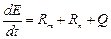 Закон об изменении энергии или переноса энергии для некоторого объема формулируется следующим образом. Изменение во времени полной энергии некоторой массы вещества равно сумме мощностей внешних объемных и поверхностных сил, приложенных к рассматриваемой массе и ее поверхности, сложенной с отнесенным к единице времени количеством тепла, которое протекает вследствие теплопроводности через поверхность, ограничивающую выделенную массу. Приведенный закон можно записать в виде
