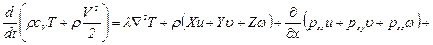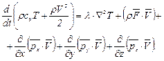 где Q - количество тепла, протекающее в единицу времени через поверхность рассматриваемого объема. Полная энергия единицы объема Е есть сумма внутренней и кинетической энергии, т.е.