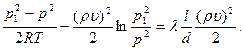 Коэффициент λ, входящий в формулы (17.18) и (17.19), определяется так же, как и для несжимаемых жидкостей по числу Re и относительной шероховатости. С помощью формулы (17.9), а также уравнения состояния и уравнения изотермы исключим из формулы (17.17) давления, введя в нее скорости, и приведем ее к виду