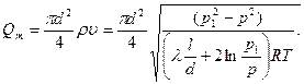 В длинных трубопроводах при движении газа со скоростями, значительно меньшими звуковых, В этих условиях выражением 2ln(p1/p) в формуле (17.18) можно пренебречь и получить упрощенную формулу
