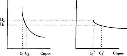 а. Неэластичный спрос б. Эластичный спрос Рис. 1.9. Ценовая эластичность