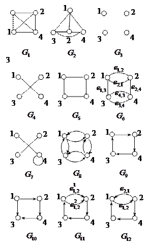 9. Когда граф называется полностью заданным? Задайте граф в форме отображений. 10. Построить матрицы смежности и инциденции графов, изображенных на рисунке ниже. Чему равны степени вершин?