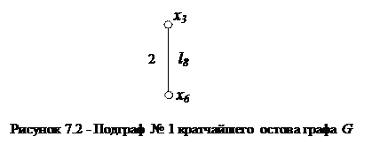 Так как ребра взвешены весами (указаны над круглыми скобками), выберем ребро с минимальным значением веса В итоге получим подграф кратчайшего остова, изображенный на рисунке 7.2.