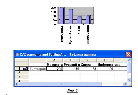 Построение диаграммЦель. Научиться строить диаграммы на основе имеющейся таблицы Word, выбирать тип диаграммы и способ ее оформления. Д ля создания диаграммы в документе Word следует: 1. подготовить данные для построения диаграммы в виде таблицы. Таблица может содержать имена строк и столбцов, которые используются как метки по оси Х и легенды для рядов данных. Если имен нет в таблице, их можно сформировать непосредственно в окне Ms Graph. 2. Выделить таблицу и выполнить команду Вставка/Объект из вкладки Создание выбирается объект Диаграмма Microsoft Graph ОК. В документе появится диаграмма и таблица данных. Ее можно удалить. Microsoft Graph автоматически создает из данных диаграмму. Диаграмма имеет область построения диаграммы и область диаграммы. Для настройки диаграммы нужно переключиться в Microsoft Graph в меню Диаграммы и командой Тип диаграммы выбрать понравившийся тип диаграммы и установить Параметры диаграммы: Заголовок, Оси, Линии сетки, Легенда, Таблица данных, Подписи данных. Для изменения любого элемента диаграммы, элемент щелком выделяется и контекстное меню, в котором выбирается команда Формат выделенного объекта, например, изменить цвет области диаграммы. Можно изменить принцип построения диаграммы с помощью кнопок По строкам и По столбцам. Режим таблицы позволяет разместитьтаблицу под диаграммой.