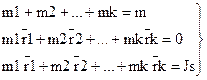 Поступательно - вращающееся звено. Все точки такого звена имеют одинаковые ускорения, равные ускорению центра масс as, а угловое ускорение Если звено совершает вращательное движение вокруг оси, проходящей через центр масс, то ускорение центра масс равно нулю (as=0) и сила инерции также равна нулю ( Заменяющие массы.В ряде случаев удобно массу звена условно заменить несколькими массами, сосредоточенными в заранее выбранных точках. Условия такой замены заключаются в эквивалентности сил инерции звена и заменяющей его фиктивной системы масс: сумма масс mi, расположенных в точках замещения, должна быть равна массе m звена; сумма статических моментов относительно центра масс должна быть равна нулю; сумма моментов инерции сосредоточенных масс относительно оси, проходящей через центр масс, должна быть равна моменту инерции звена Js.относительно этой же оси: