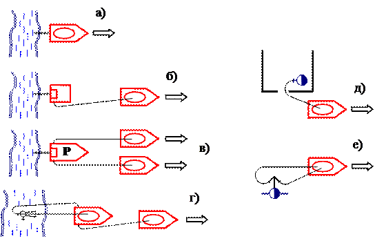 Рис. 4.3. Схемы расхода воды из автоцистерн на месте тушения пожара, (ликвидации последствий ЧС). Варианты расхода воды на месте тушения пожара: – при недостаточном количестве АЦ на пожаре (рис. 4.3 «а»); – при достаточном количестве АЦ на пожаре (рис.4.3 «б»); – с использованием промежуточной емкости (рис. 4.3 «в»).