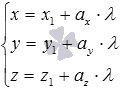 Канонические уравнения прямой в пространствеРазрешив каждое из параметрических уравнений прямой вида Канонические уравнения прямой в пространстве определяют прямую, проходящую через точку Следует отметить, что одно или два из чисел Если одно из чисел