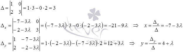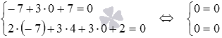 Сначала рассмотрим следующую задачу. Пусть прямоугольной системе координат Oxyz в трехмерном пространстве прямая a задана уравнениями двух пересекающихся плоскостей как Для решения поставленной задачи нужно подставить координаты точки Пример. Лежат ли точки Решение. Подставим координаты точки М0 в уравнения системы: Теперь подставляем координаты точки N0: Ответ. Точка М0 лежит на прямой, а N0 не лежит. Теперь рассмотрим задачу нахождения координат некоторой точки, лежащей на прямой, если прямая в пространстве в прямоугольной системе координат определяется уравнениями пересекающихся плоскостей Решением этой задачи является любое из бесконечного множества решений системы из двух линейных уравнений с тремя неизвестными вида Пример. Найдите координаты любой точки прямой, заданной в пространстве уравнениями двух пересекающихся плоскостей Решение. Перепишем систему уравнений в следующем виде В качестве базисного минора основной матрицы системы возьмем отличный от нуля минор второго порядка Примем Решим полученную систему уравнений методом Крамера: Таким образом, общее решение системы уравнений Если взять конкретное значение параметра Можно выполнить проверку найденных координат точки, подставив их в исходные уравнения двух пересекающихся плоскостей: Ответ.