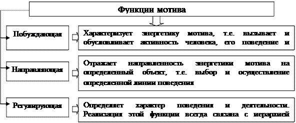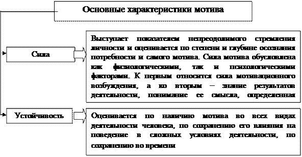 Мотивы Человек, испытывая нужду в чем-то, ищет возможность ее удовлетворить. Удовлетворить потребность можно только в активности, в духовной или физической деятельности. Промежуточным средством удовлетворения потребности, побуждающим человека к конкретной деятельности, выступает мотив. Мотивы – это те внутренние силы, которые связаны с потребностями личности и побуждают ее к определенной деятельности. Мотив – способ проявления потребности, психологическая форма ее существования. Мотивация – это совокупность мотивов, побуждающих человека к активной деятельности. Мотив характеризуется силой и устойчивостью (рис. 26); выполняет побуждающую, направляющую и регулирующую функции (рис. 27)[26].